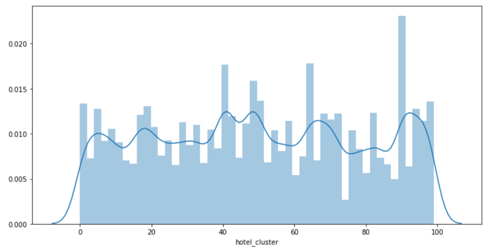 目标是根据用户搜索中的信息预测用户将预订哪个hotel_cluster。共有100个簇。换句话说,我们正在处理100个类的分类问题。
