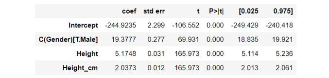 multi_model2 = smf.ols(formula='Weight ~ Height + C(Gender) + Height_cm', data=multi_data).fit()