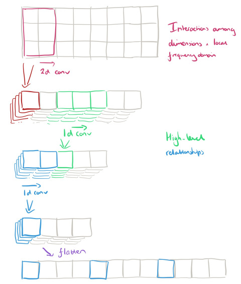 把该点上所有的东西都用一个张量来表示是很方便的,但实际上,我们将会在T维中处理切片。每个d x 2f窗口切片都是由一个带有三个阶段的卷积神经网络组成,如下图所示: