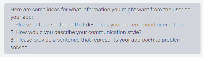 你只需输入一个解释你解决问题方法的提示,该应用程序将基于你的句子生成一个人格类型预测。