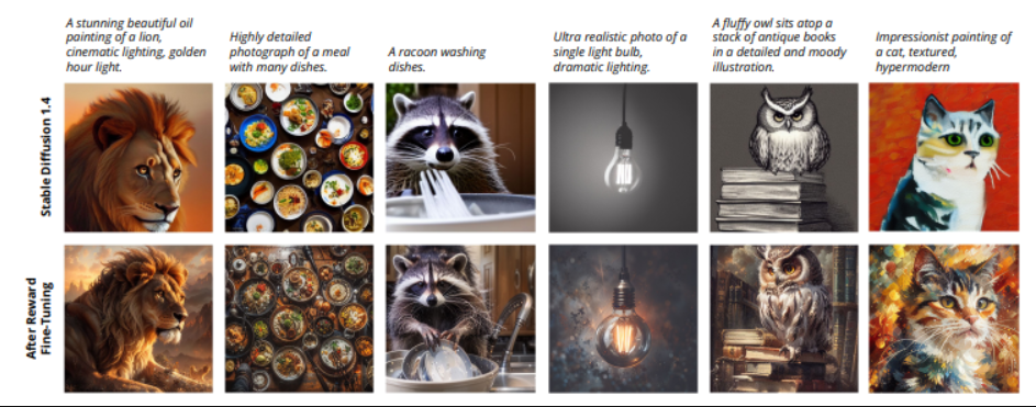 扩散模型在各种数据类型的生成建模方面带来了革命性的变革。然而,在一些实际应用场景中,比如从文本描述生成美观的图像,通常需要进行微调。文本到图像扩散模型采用了一些技术,如无分类器引导和精选数据集(比如LAION美学数据集),以提升对齐和图像质量。