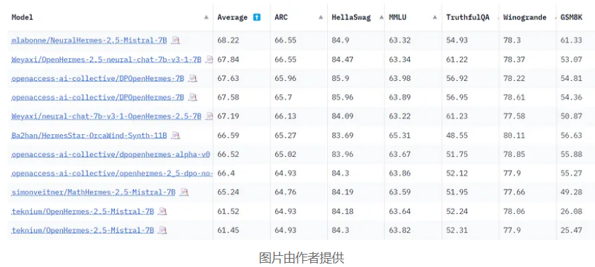 与原始模型相比,NeuralHermes-2.5-Mistral-7B模型将平均得分提高了6.7分(尤其是在GSM8K上)。这是一个意外的大幅度改进,展示了直接偏好优化的力量。