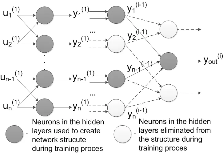 GMDH 神经网络的特点是多层自组织结构。与通常需要人工设计结构的传统神经网络不同,GMDH 网络在训练过程中会迭代发展其结构。从简单的模型开始,网络通过增加层和神经元来提高复杂性,从而提高准确性。这种方法符合归纳学习的原则,即模型通过从数据本身学习而不断发展。