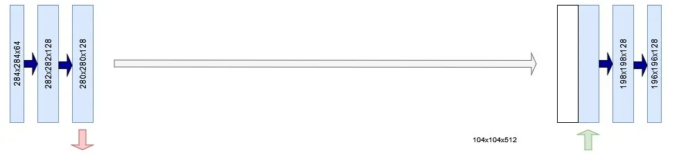 回顾一下,U-Net 是由一个收缩路径和一个扩展路径组成的,前者本身是由卷积块构建的,后者则是由上采样块构建的。在每一层中(除了收缩路径的最后一层,它与扩展路径的首层相连),卷积块的输出通过跳转连接与上采样块相连。