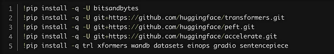 安装微调 Mistral 所需的 Python 软件包和库