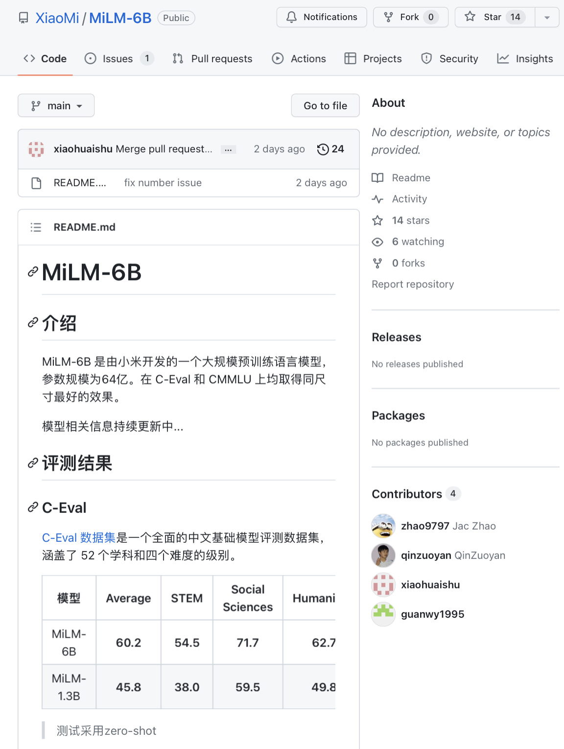 值得一提的是,GitHub项目页显示,MiLM-6B作为小米公司开发的一款大规模预训练语言模型,其参数规模高达64亿。这一庞大的参数规模为其在处理复杂语言任务时提供了强大的支撑。