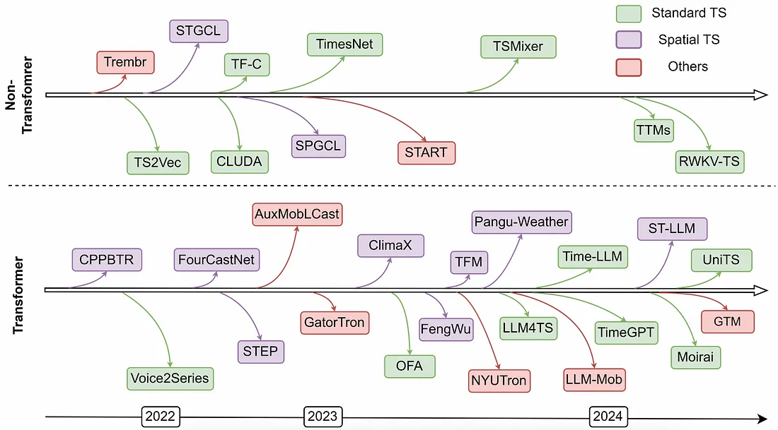 继基础模型在计算语言学领域取得成功之后,越来越多的研究工作正致力于将这一成功复制到另一种类型的序列数据中:时间序列。