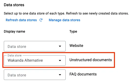 为了让代理能够推荐类似的地方,你可以通过数据存储为代理提供更多信息。如果代理无法基于其内置知识回答用户问题,数据存储就可以作为代理的额外知识库进行参考。这种技术也被称为“基础”。