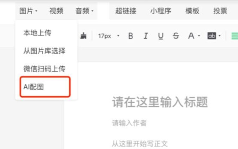 今日,微信公众号后台迎来了一次重要的功能更新,为广大的内容创作者带来了全新的配图方式。除了传统的从图片库选择和本地上传图片外,此次更新特别增加了一项名为“AI 配图”的选项,旨在进一步提升内容创作的便捷性和效率。