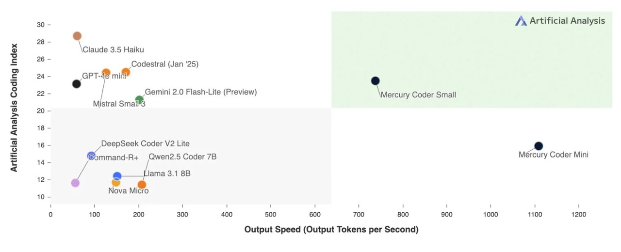 Mercury经过严格的基准测试,与领先的Transformer模型如Gemini 2.0 Flashlight、GPT 40 Mini以及像Quin 2.0和Deep Coder V2 Light这样的开放权重模型进行比较。虽然其整体性能与较小的Transformer模型接近,但Mercury的并行标记生成使其在速度上具有明显优势。这一能力使其特别适合需要实时响应或大规模数据处理的应用,在这些应用中,效率和速度至关重要。通过满足这些特定需求,Mercury将自己定位为传统Transformer系统的一个有吸引力的替代方案,特别是在优先考虑延迟减少的场景中。