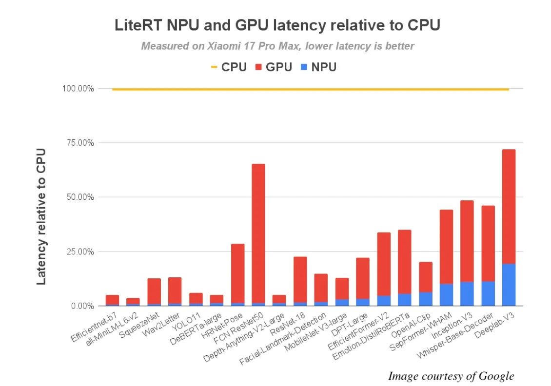 尽管现代安卓设备普遍配备了GPU硬件,但谷歌的软件工程师卢王、Wiyi Wanf和安德鲁·王指出,单靠GPU处理AI任务可能会导致性能瓶颈。例如,他们提到,“在设备上运行一个计算密集型的文本到图像生成模型,同时使用基于机器学习的分割处理实时相机画面”可能会让即使是高端移动GPU也难以承受。结果可能导致用户体验卡顿和掉帧。